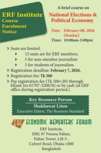 Pay registration fee (Tk 500+20) through bKash (to 01707-520676) or by cash (at ERF office during registration period.)